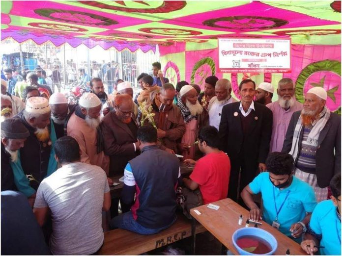 পঞ্চগড়ে “বাঁধন” এর অায়োজনে বিনামূল্যে রক্তের গ্রুপ নির্ণয়